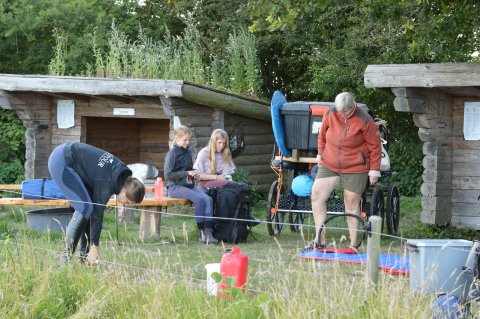 Første overnatning foregik i shelters ved Naturskolen lidt udenfor Maribo. Her havde hestene en dejlig stor fold at rende rundt på, mens vi fra vores shelters kunne ligge og holde øje med dem.